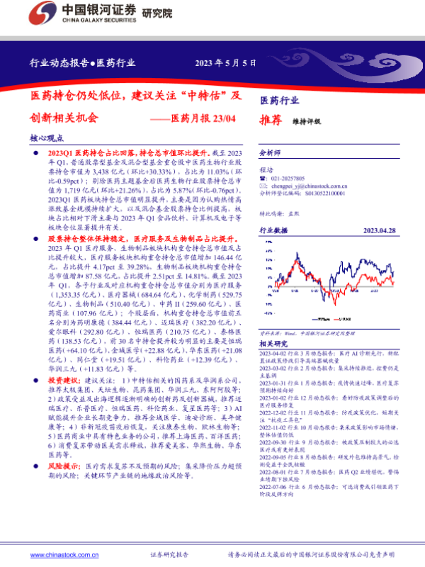 【银河证券】【20230505】医药月报23 04:医药持仓仍处低位,建议关注“中特估”及创新相关机会-19页