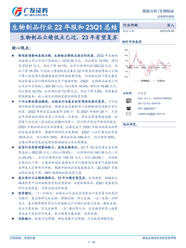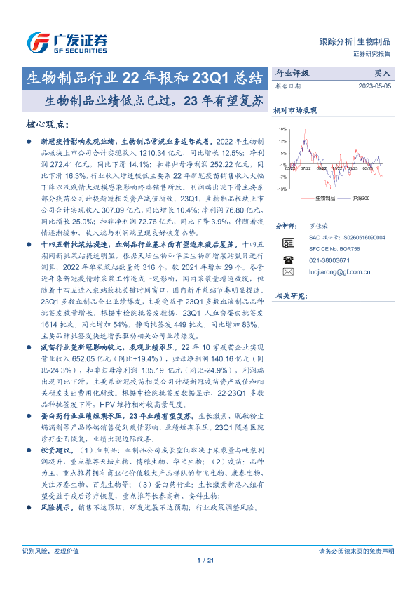 【广发证券】【20230505】生物制品行业22年报和23Q1总结-21页