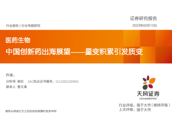 【天风证券】【20230513】中国创新药出海展望——量变积累引发质变-27页