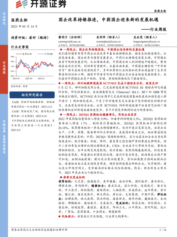 【开源证券】【20230514】医药生物行业周报:国企改革持续推进,中药国企迎来新的发展机遇-14页