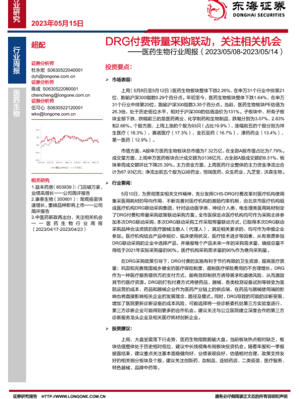 【东海证券】【20230515】DRG付费带量采购联动,关注相关机会-13页