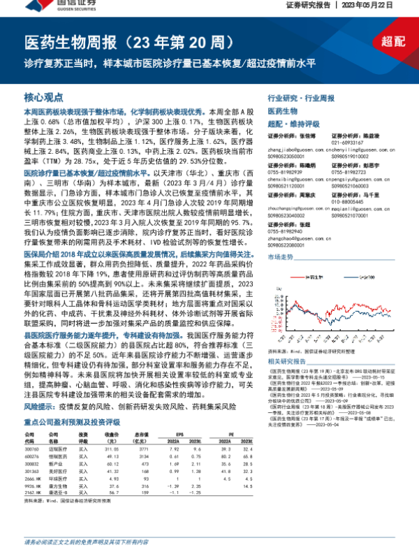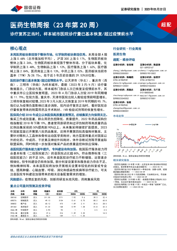 【国信证券】【20230522】医药生物周报:诊疗复苏正当时,样本城市医院诊疗量已基本恢复超过疫情前水平-17页