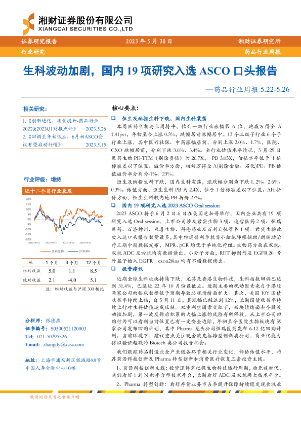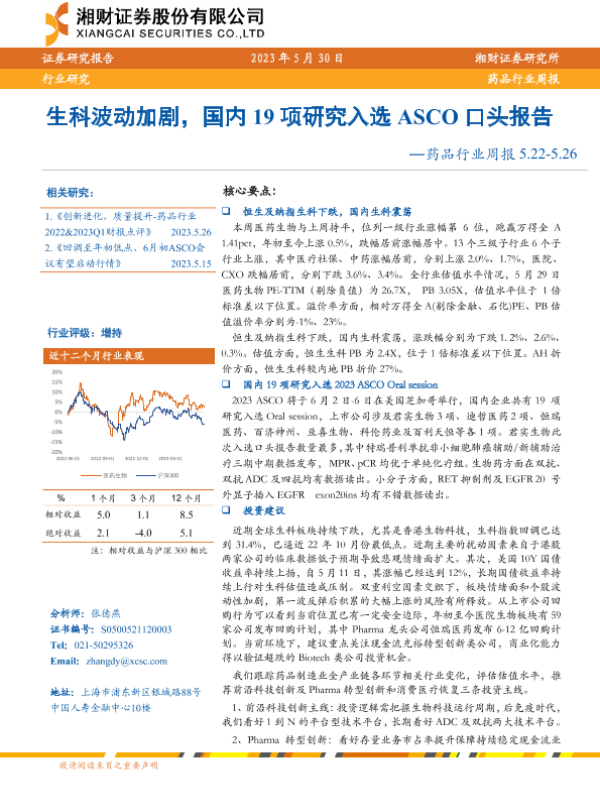 【湘财证券】【20230530】生科波动加剧,国内19项研究入选ASCO口头报告-14页