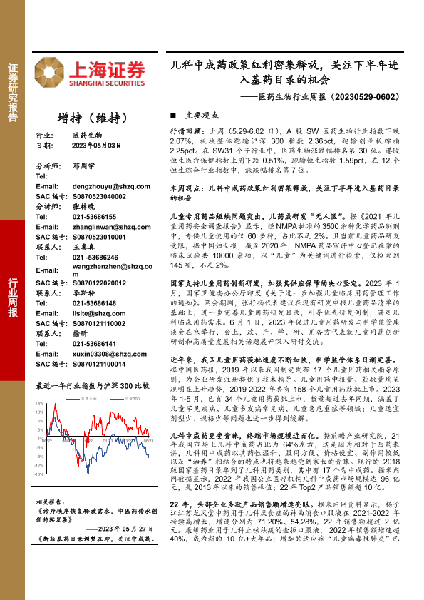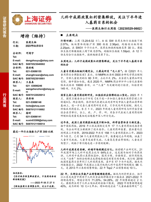 【上海证券】【20230603】儿科中成药政策红利密集释放,关注下半年进入基药目录的机会-24页