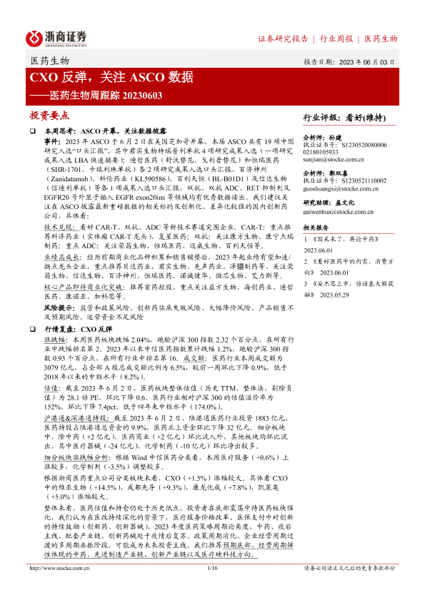 【浙商证券】【20230603】医药生物周跟踪:CXO反弹,关注ASCO数据-16页