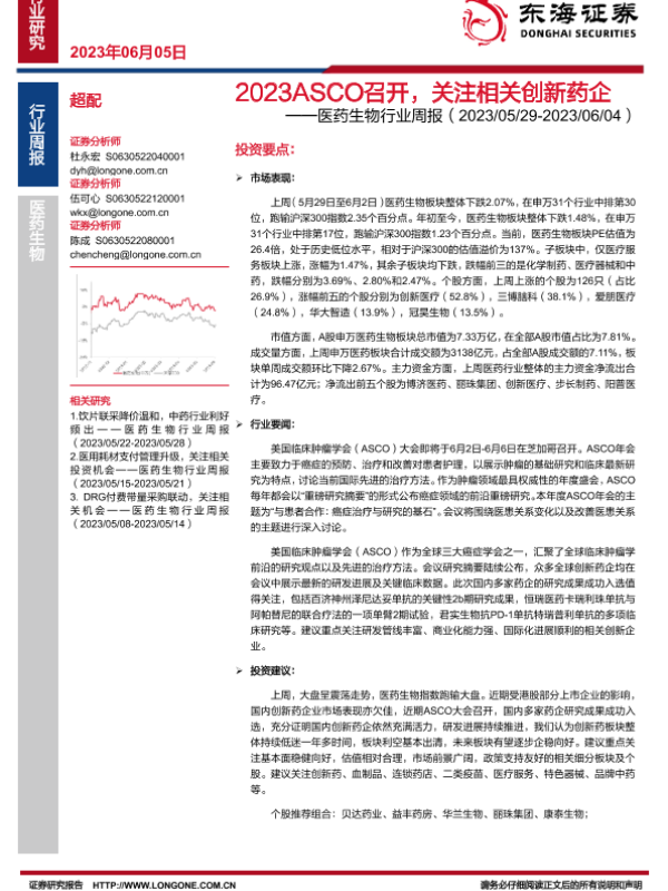 【东海证券】【20230605】2023 ASCO召开,关注相关创新药企-13页