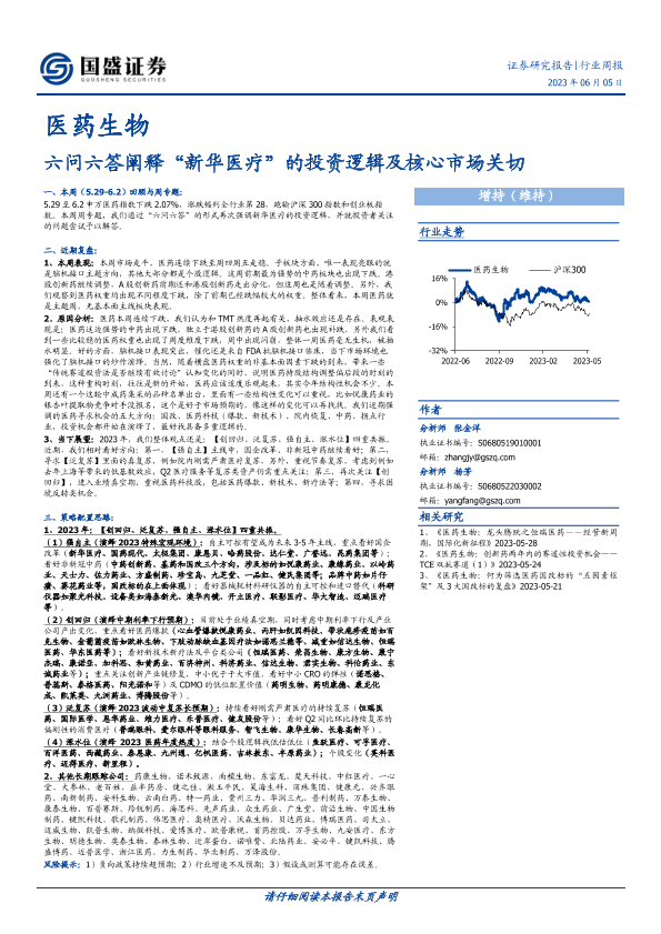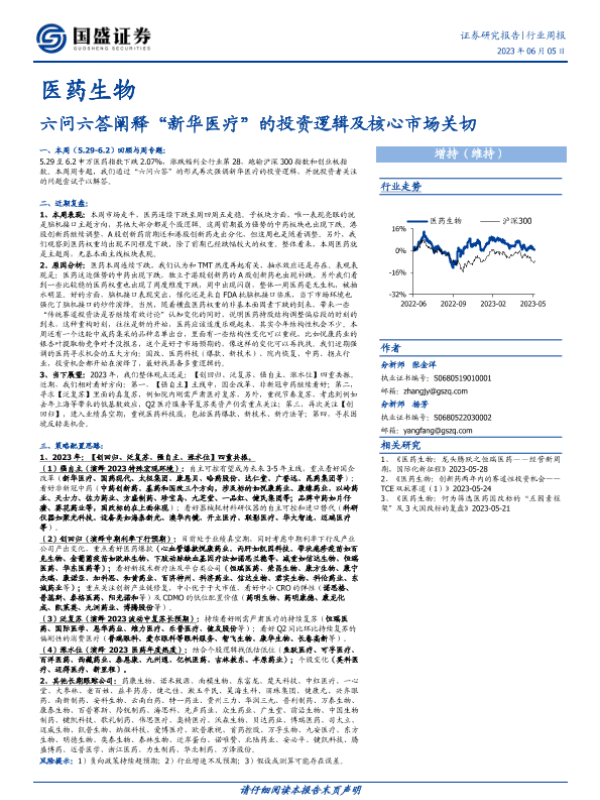 医药生物 市场表现 投资逻辑 新华医疗 行业周报
