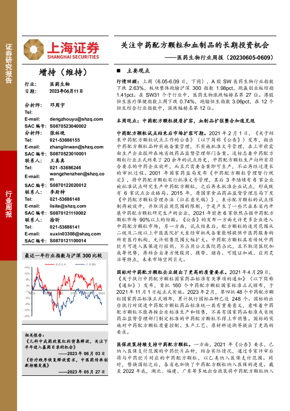 【上海证券】【20230611】关注中药配方颗粒和血制品的长期投资机会-27页