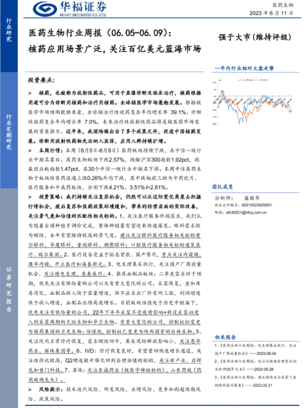 【华福证券】【20230611】医药生物行业周报:核药应用场景广泛,关注百亿美元蓝海市场-14页