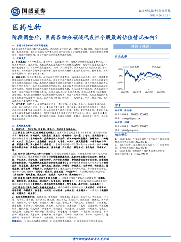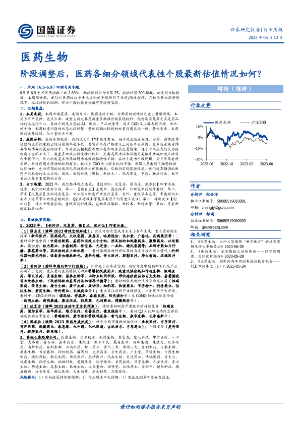 【国盛证券】【20230612】医药生物行业周报:阶段调整后,医药各细分领域代表性个股最新估值情况如何?-20页