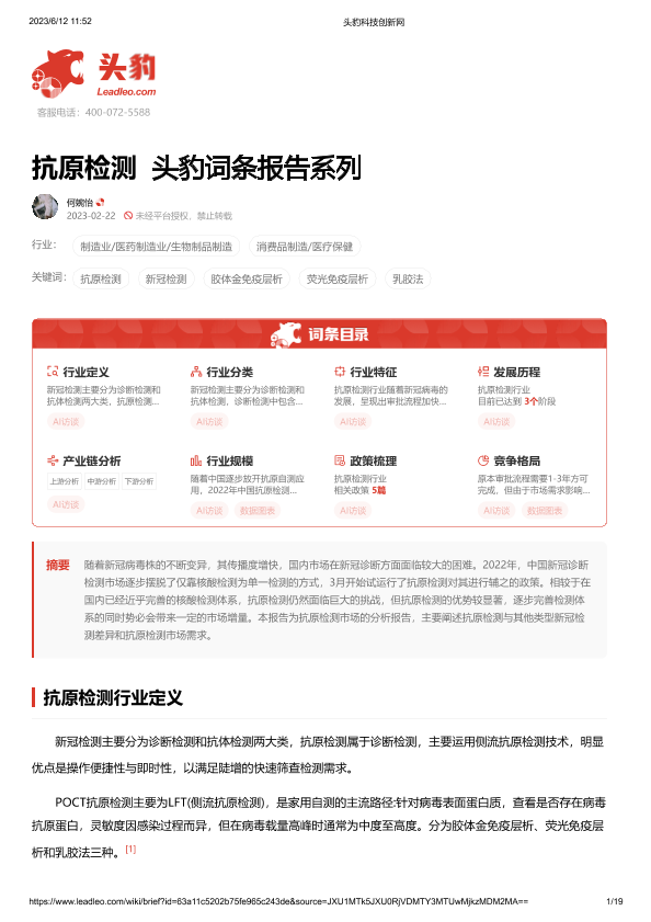 【头豹研究院】【20230612】抗原检测 头豹词条报告系列-19页