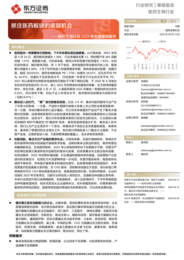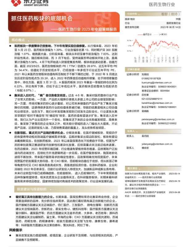 【东方证券】【20230614】抓住医药板块的底部机会-49页