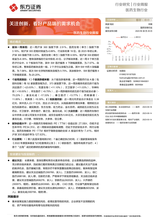 【东方证券】【20230625】医药生物行业周报:关注创新,看好产品端的需求机会-11页