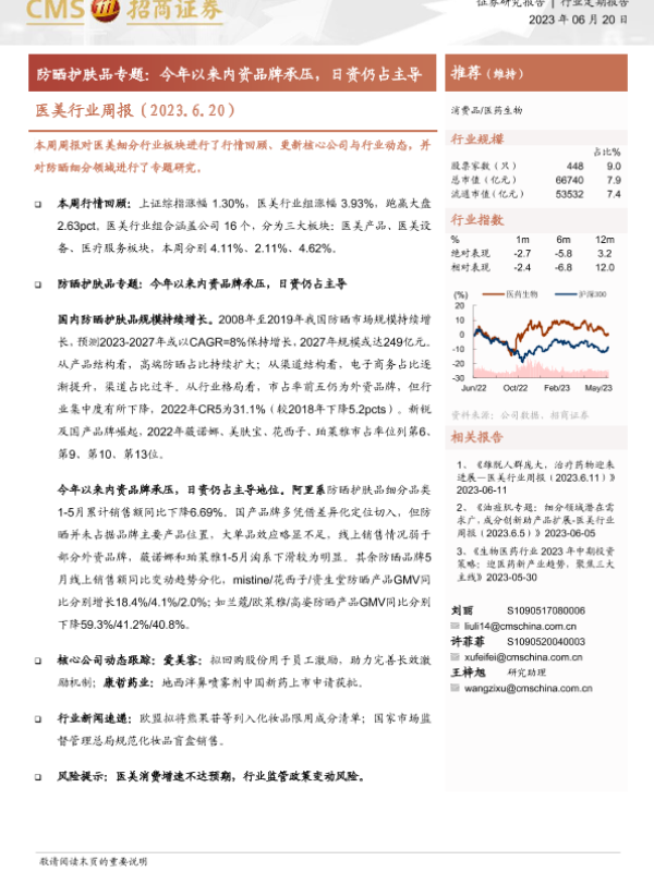 【海通证券】【20230620】医美行业周报:防晒护肤品专题-12页