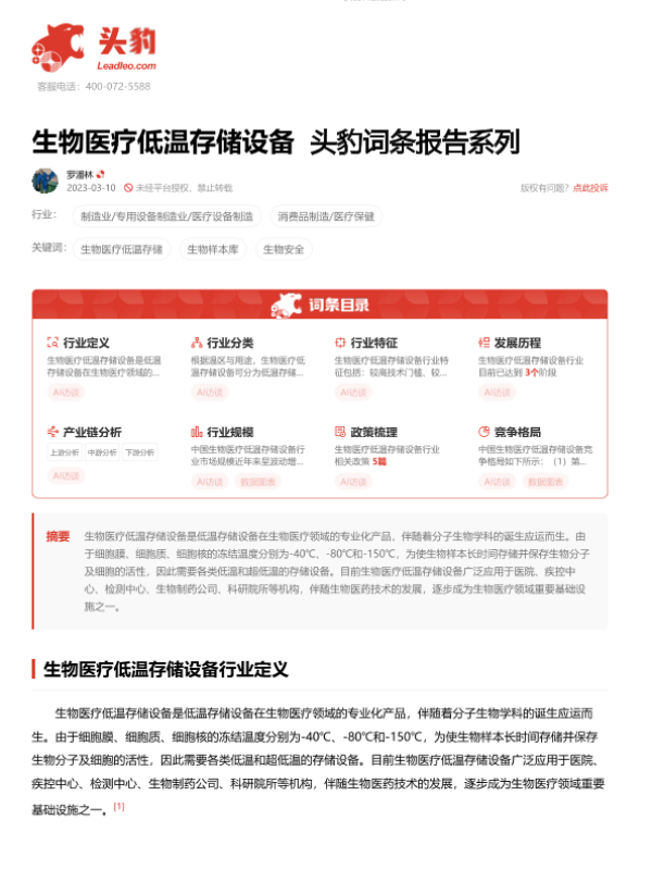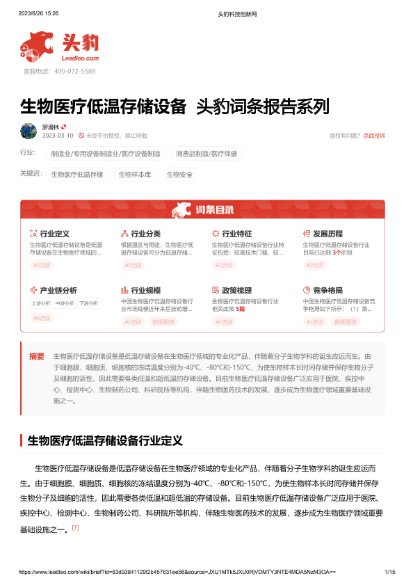 【头豹研究院】【20230626】生物医疗低温存储设备 头豹词条报告系列-15页