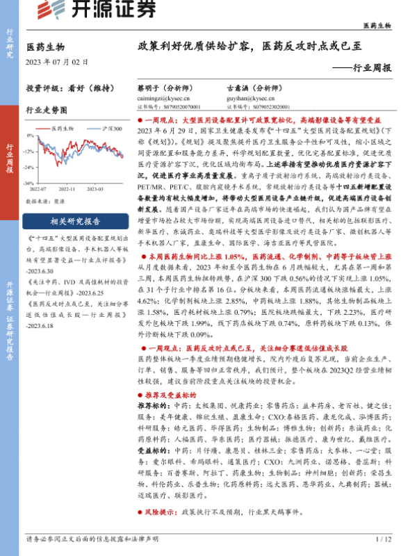 【开源证券】【20230702】医药生物行业周报:政策利好优质供给扩容,医药反攻时点或已至-12页