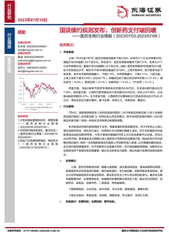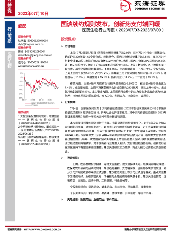 【东海证券】【20230710】国谈续约规则发布,创新药支付端回暖-13页