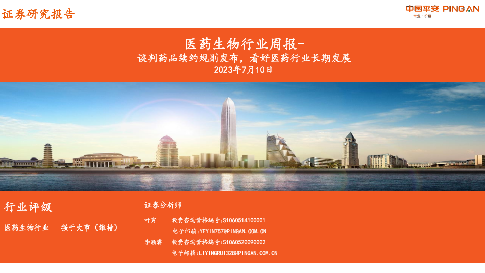 【平安证券】【20230710】医药生物行业周报:谈判药品续约规则发布,看好医药行业长期发展-13页