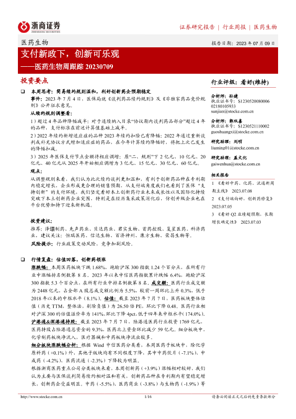 创新药 医保谈判 医药生物 市场展望 支付新政