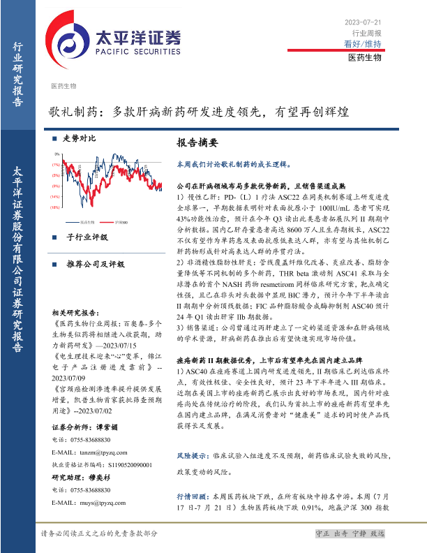 【太平洋证券】【20230721】歌礼制药:多款肝病新药研发进度领先,有望再创辉煌-17页