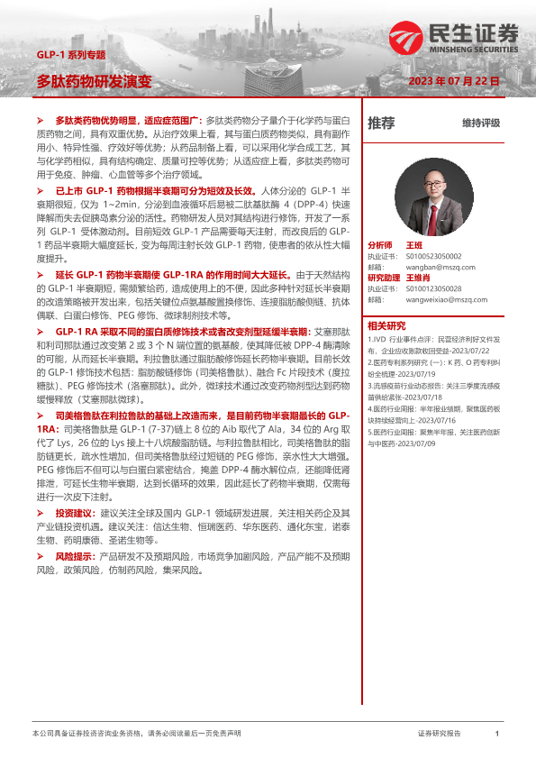 【民生证券】【20230722】GLP-1系列专题:多肽药物研发演变-15页