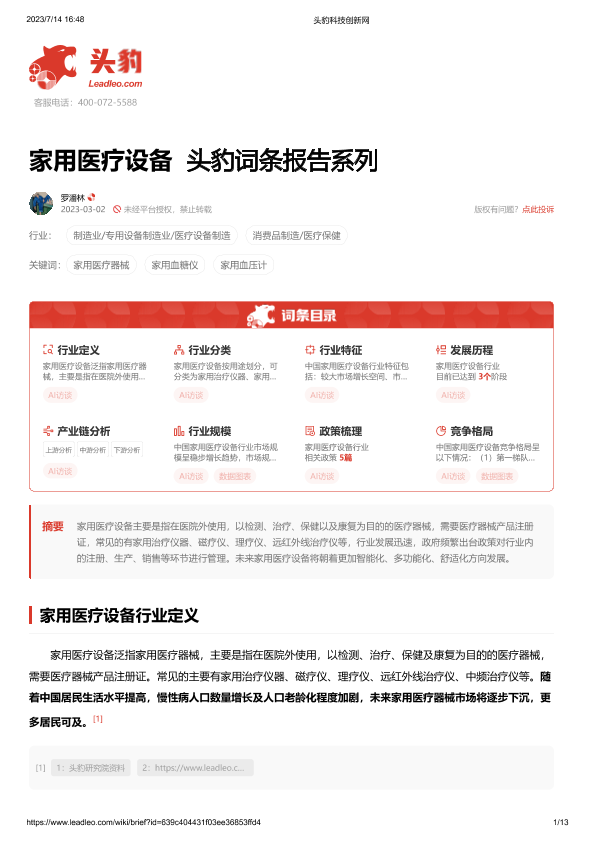 【头豹研究院】【20230727】家用医疗设备 头豹词条报告系列-13页