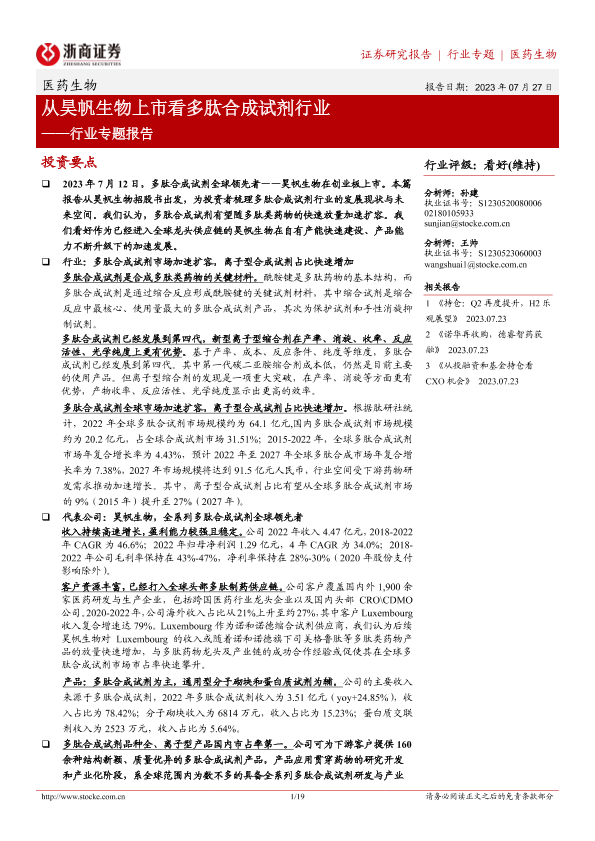 【浙商证券】【20230727】从昊帆生物上市看多肽合成试剂行业-19页