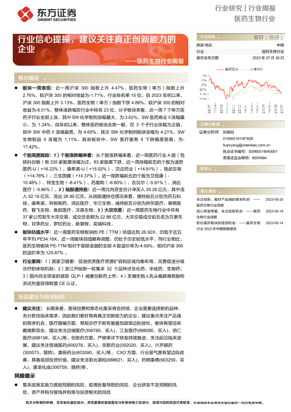【东方证券】【20230730】医药生物行业周报:行业信心提振,建议关注真正创新能力的企业-11页