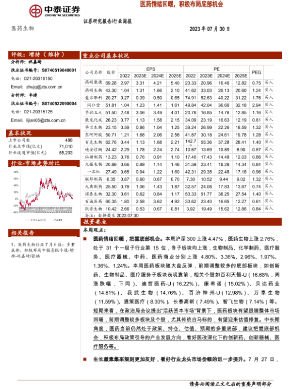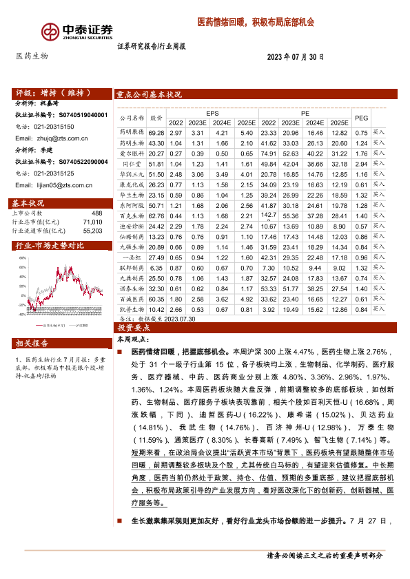 【中泰证券】【20230730】医药生物行业周报:医药情绪回暖,积极布局底部机会-12页