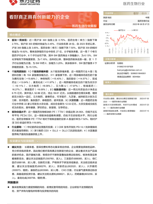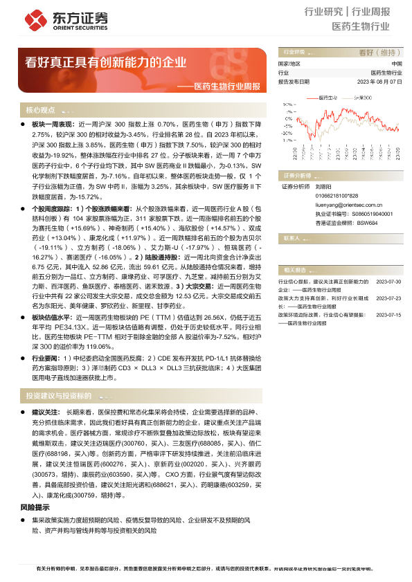 【东方证券】【20230807】医药生物行业周报:看好真正具有创新能力的企业-10页