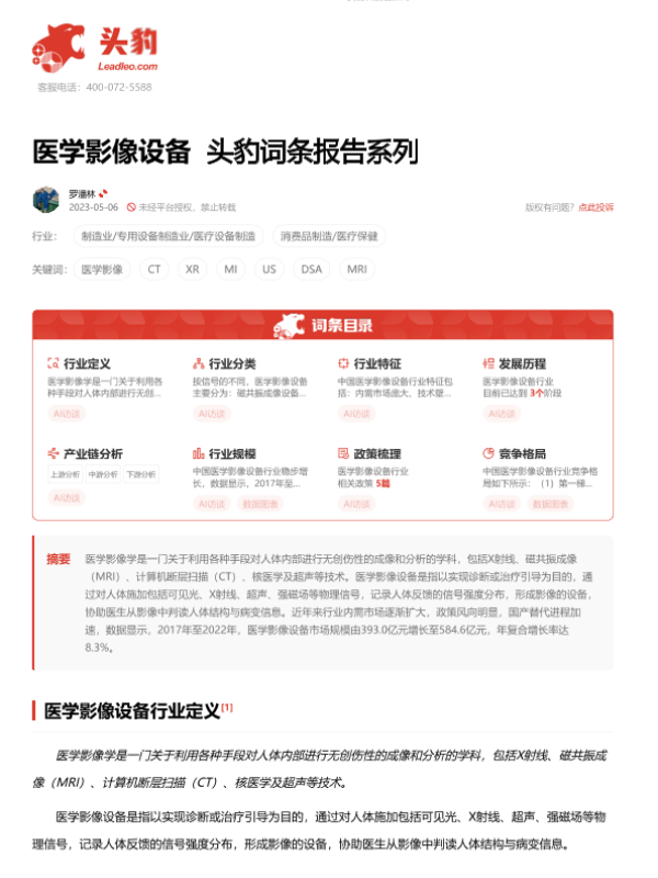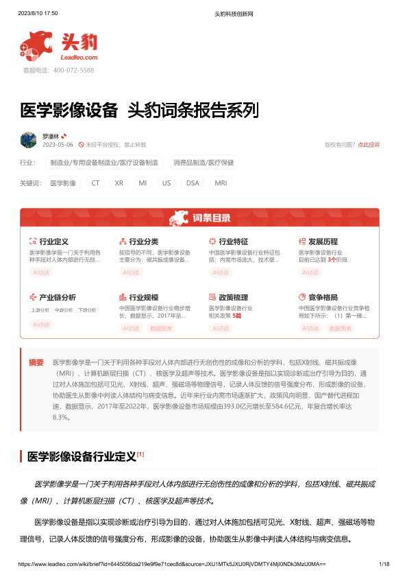 【头豹研究院】【20230810】医学影像设备-18页