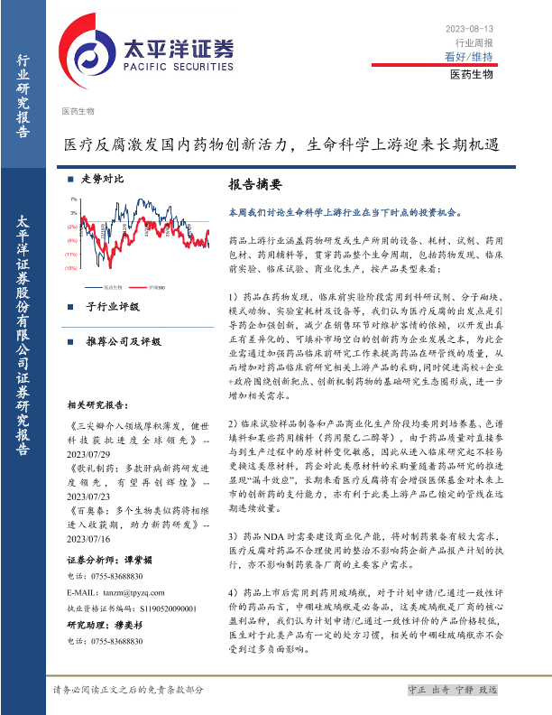 【太平洋证券】【20230813】医药生物行业周报:医疗反腐激发国内药物创新活力,生命科学上游迎来长期机遇-17页