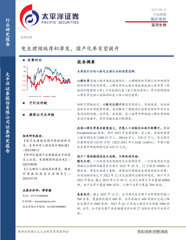 【太平洋证券】【20230819】电生理领域厚积薄发,国产化率有望提升-20页