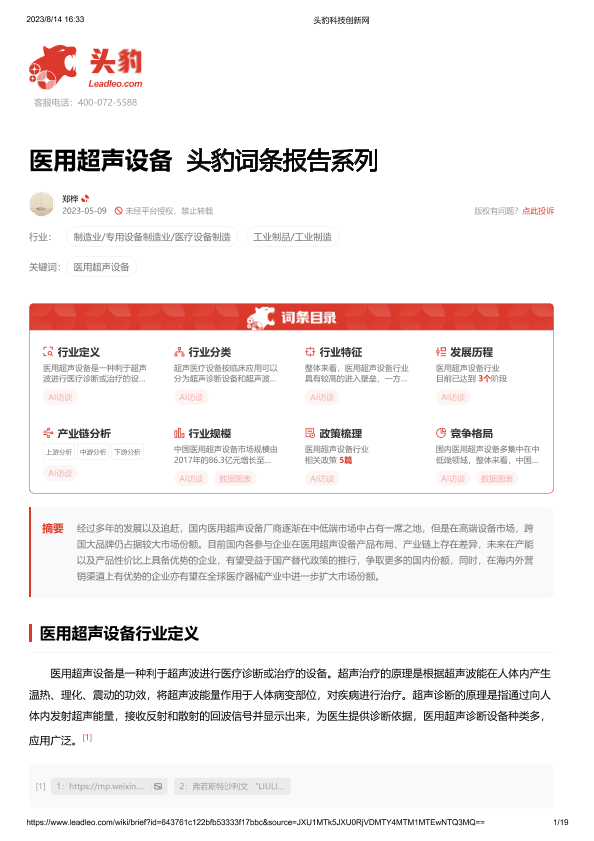 【头豹研究院】【20230821】医用超声设备-19页
