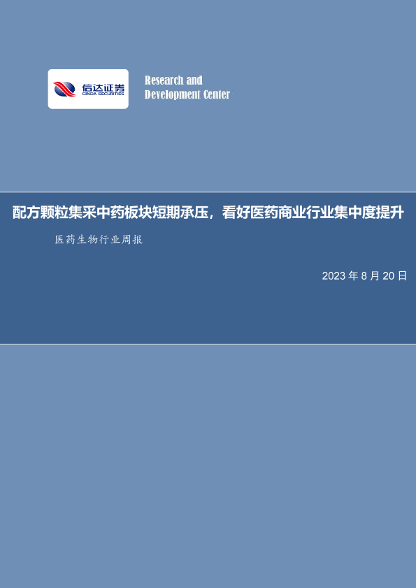 【信达证券】【20230820】配方颗粒集采中药板块短期承压,看好医药商业行业集中度提升-15页