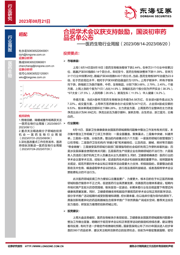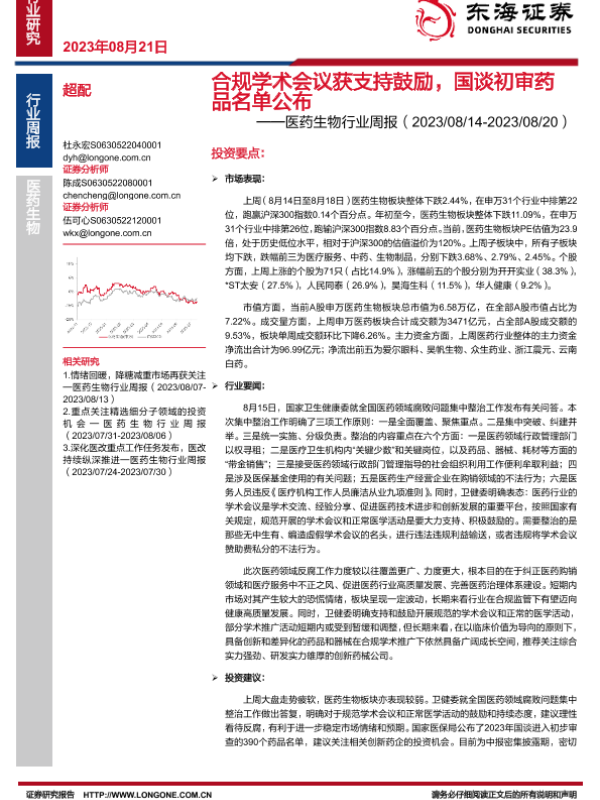 【东海证券】【20230821】合规学术会议获支持鼓励,国谈初审药品名单公布-14页