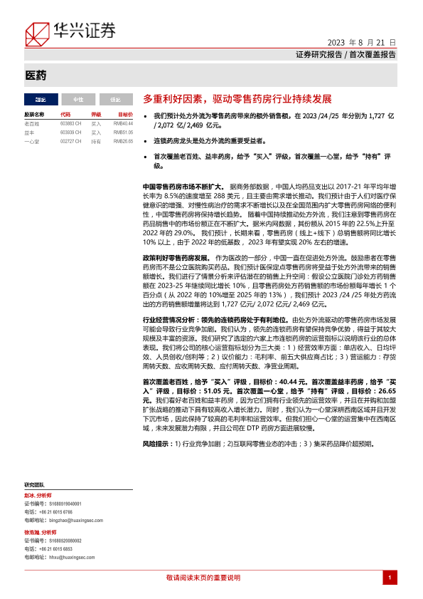 【华兴证券】【20230821】多重利好因素,驱动零售药房行业持续发展-87页
