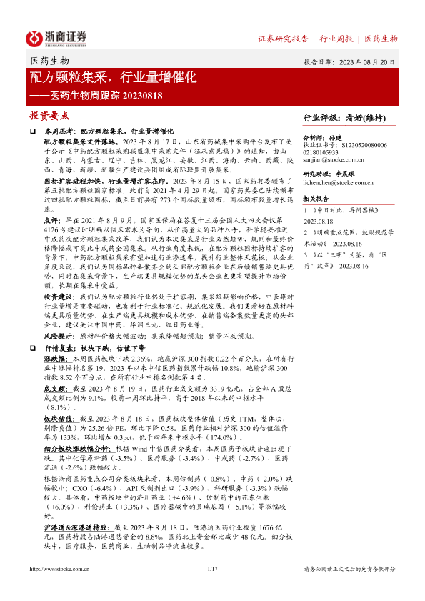 【浙商证券】【20230820】医药生物周跟踪:配方颗粒集采,行业量增催化-17页