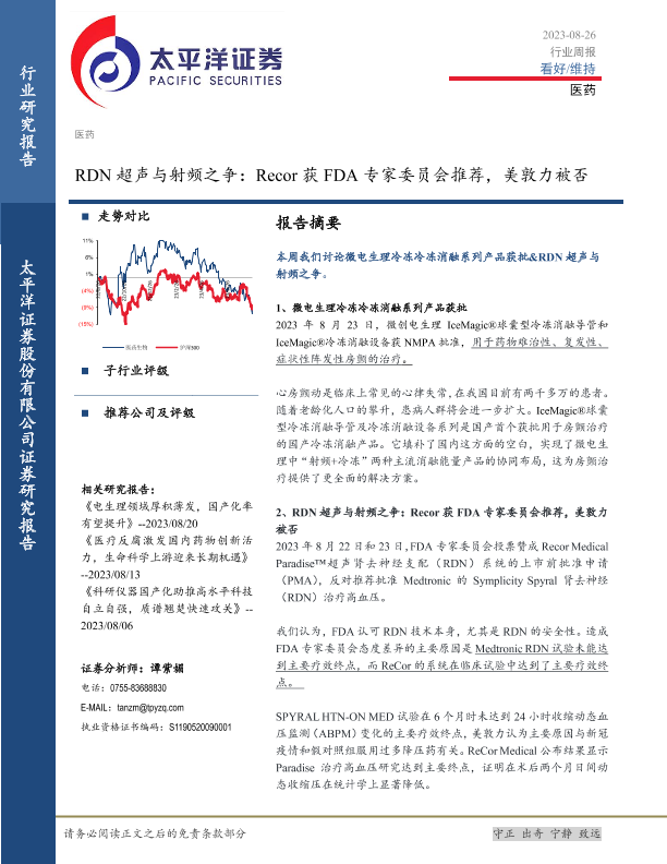 【太平洋证券】【20230826】RDN超声与射频之争:Recor获FDA专家委员会推荐,美敦力被否-26页