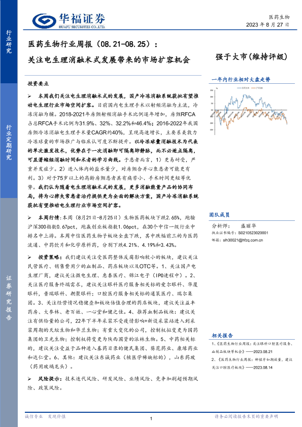 【华福证券】【20230827】医药生物行业周报:关注电生理消融术式发展带来的市场扩容机会-14页