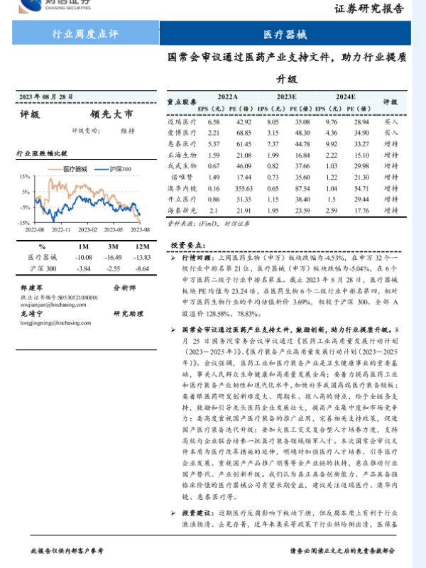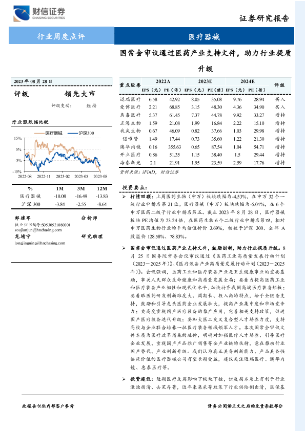 【财信证券】【20230828】医疗器械行业周度点评:国常会审议通过医药产业支持文件,助力行业提质升级-11页