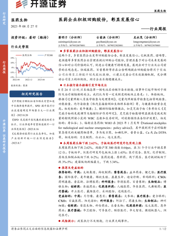 【开源证券】【20230827】医药企业积极回购股份,彰显发展信心-12页