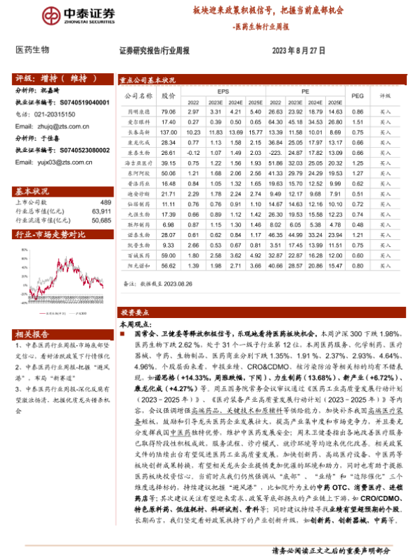 【中泰证券】【20230827】医药生物行业周报:板块迎来政策积极信号,把握当前底部机会-12页