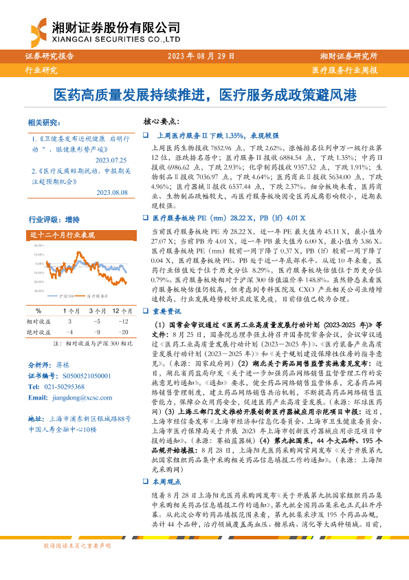 【湘财证券】【20230829】医疗服务行业周报:医药高质量发展持续推进,医疗服务成政策避风港-13页