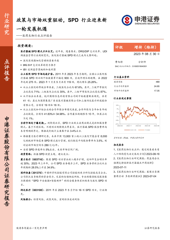 【申港证券】【20230830】医药生物行业点评报告:政策与市场双重驱动,SPD行业迎来新一轮发展机遇-10页