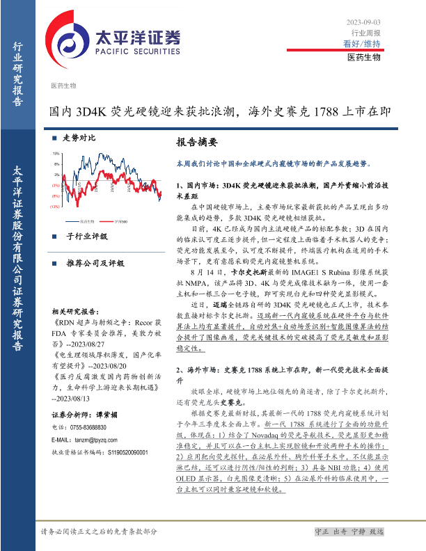 【太平洋证券】【20230903】医药生物行业周报:国内3D4K荧光硬镜迎来获批浪潮,海外史赛克1788上市在即-23页
