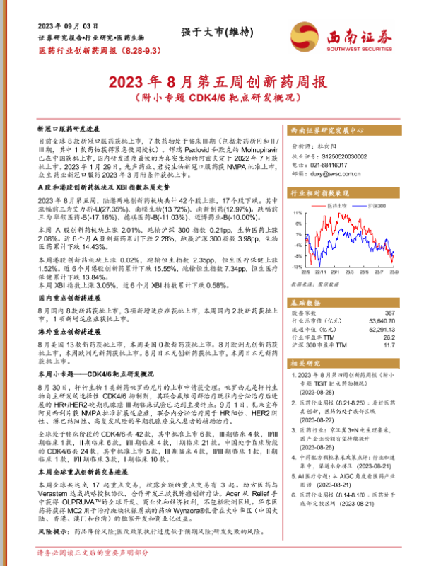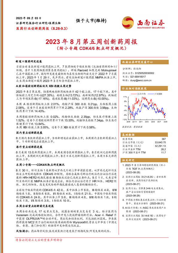 【西南证券】【20230903】2023年8月第五周创新药周报-23页