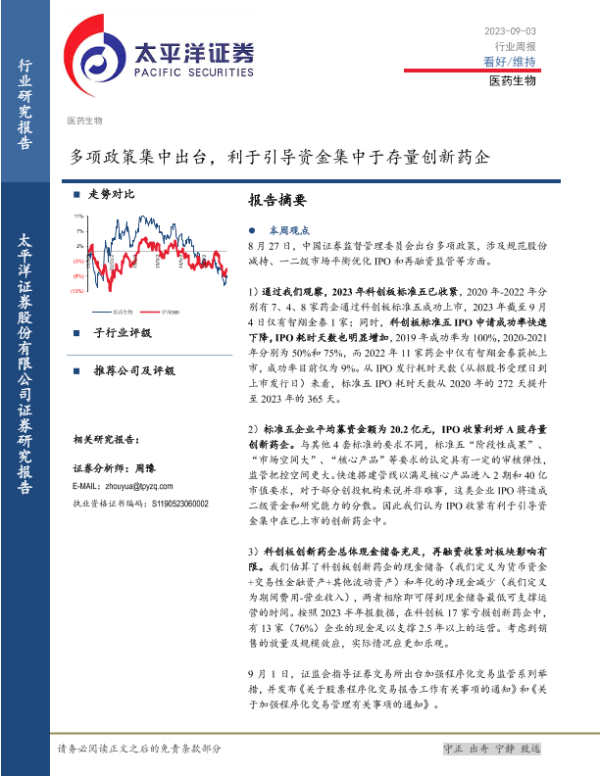 【太平洋证券】【20230903】医药生物行业周报:多项政策集中出台,利于引导资金集中于存量创新药企-23页