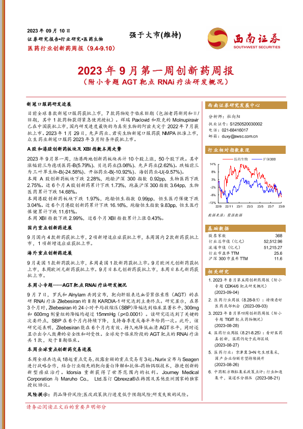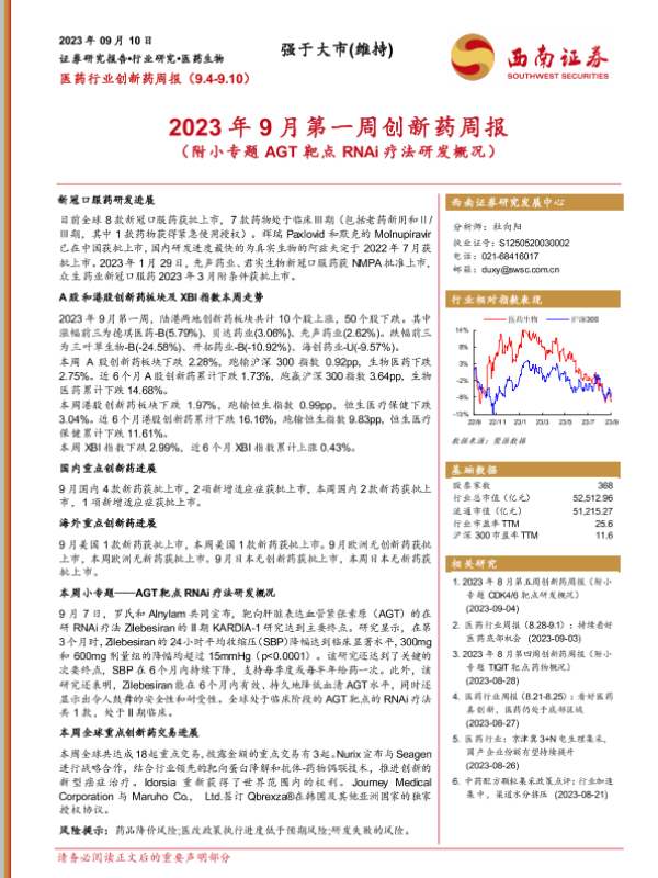【西南证券】【20230910】2023年9月第一周创新药周报-19页