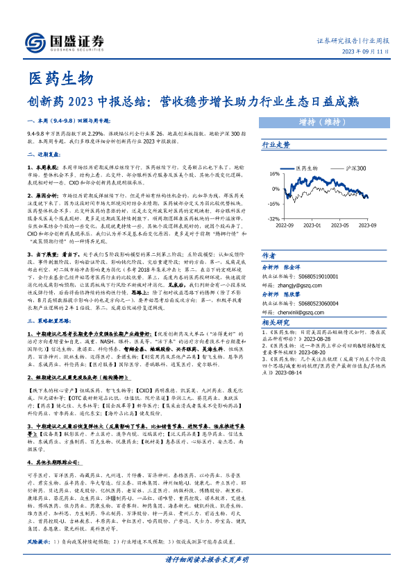 【国盛证券】【20230911】创新药2023中报总结:营收稳步增长助力行业生态日益成熟-35页